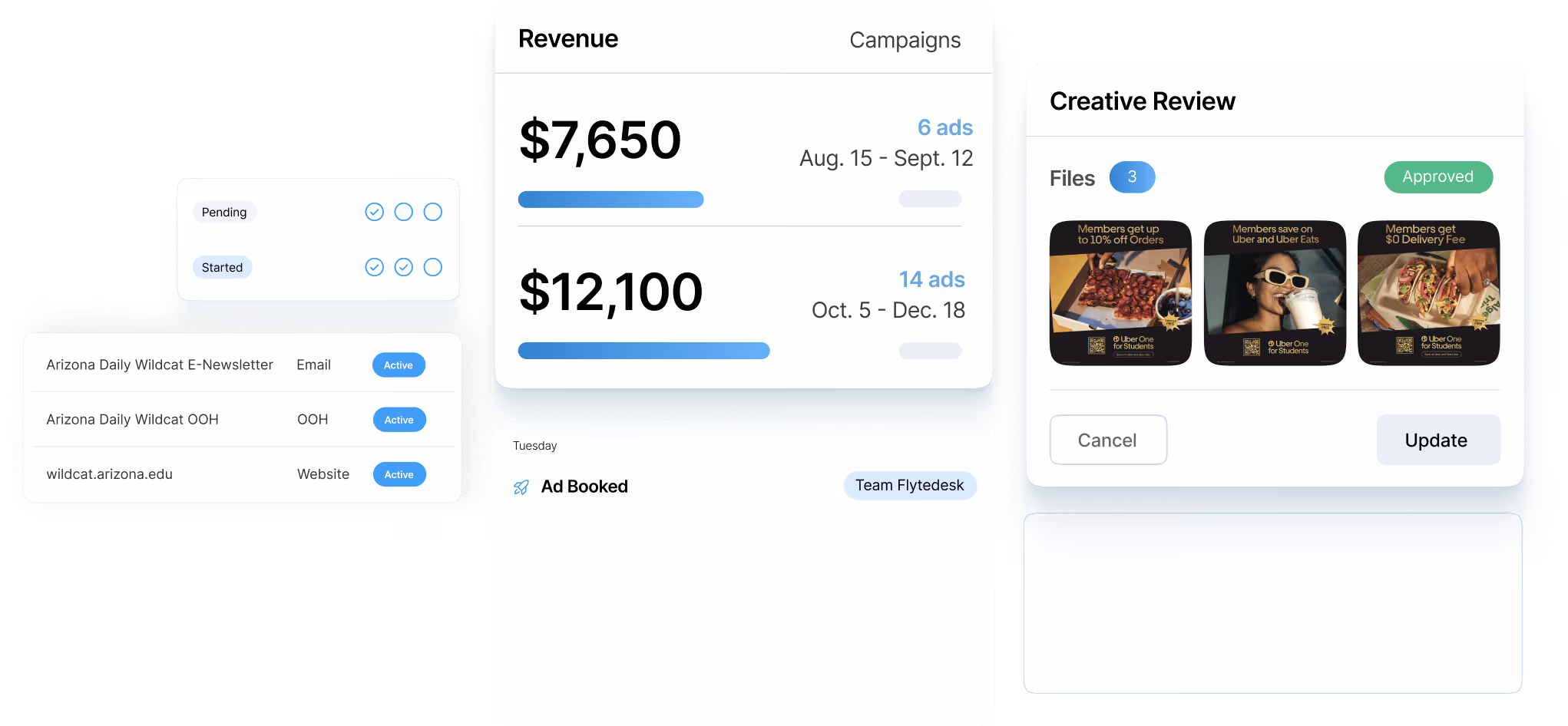 Join the network of campuses turning their local media into national revenue. flytedesk helps you expand your media offerings, connect with top brands, and generate income.
